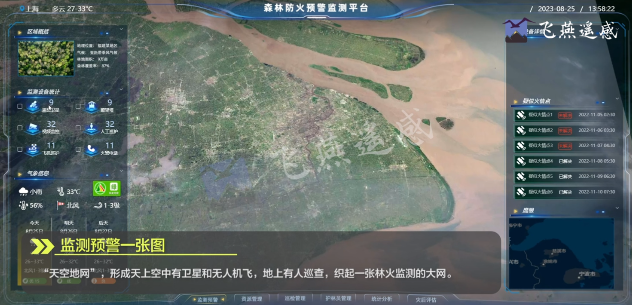 集成遙感技術(shù)、GIS技術(shù)、三維技術(shù)、大數(shù)據(jù)技術(shù)、人工智能等技術(shù),融合多源數(shù)據(jù)(林區(qū)實(shí)景三維數(shù)據(jù)、地理信息數(shù)據(jù),“空天地卡人”監(jiān)測(cè)數(shù)據(jù),融合基礎(chǔ)資源、森林資源、林業(yè)設(shè)施設(shè)備、林業(yè)物資庫(kù)、巡護(hù)管護(hù)人員等數(shù)據(jù)),實(shí)現(xiàn)災(zāi)情自動(dòng)巡航監(jiān)控、煙火智能識(shí)別、火點(diǎn)精確定位、火情分析研判、數(shù)字預(yù)案、輔助決策到災(zāi)后評(píng)估等功能。建立起森林防火事前、事中、事后全過程的業(yè)務(wù)鏈,有效提高林區(qū)日常管理效率,提升林區(qū)主管部門對(duì)火情監(jiān)測(cè)預(yù)警、應(yīng)急調(diào)度等科學(xué)決策能力水平。