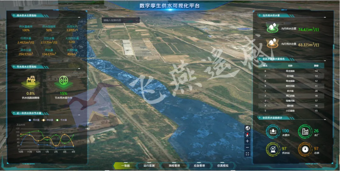 飛燕遙感數(shù)字孿生供水可視化平臺(tái)